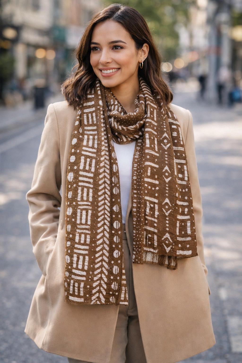 🌿 Douce, respirante et agréable au toucher, l’écharpe en Bogolan se porte en toute saison. Elle s’accorde facilement avec un look chic, urbain ou plus décontracté. Par conséquent, elle apporte toujours une touche élégante, à la fois moderne et inspirée des traditions africaines.